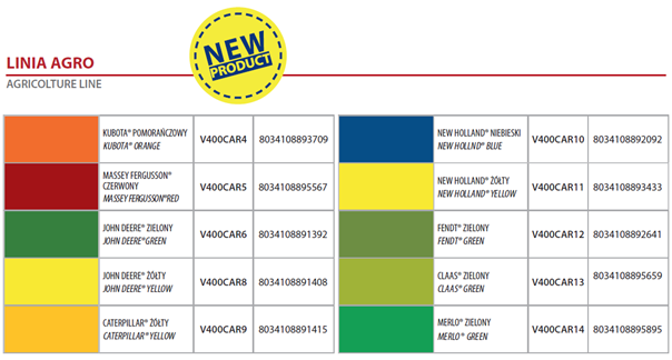 LAKIER AGRO – Profesjonalny, szybkoschnący lakier do traktorów i maszyn rolniczych o wysokiej odporności na zarysowania, działanie alkoholu i benzyny a także czynników atmosferycznych i promieniowania UV.