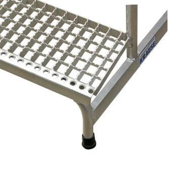 - Większe bezpieczeństwo poprzez zastosowanie stopni z kraty aluminiowej o ząbkowanej powierzchni górnej, spełniającymi najwyższe wymagania (grupa R 13 według norm DIN 51 130 i BGR 181) w zakresie zabezpieczenia przed poślizgiem.