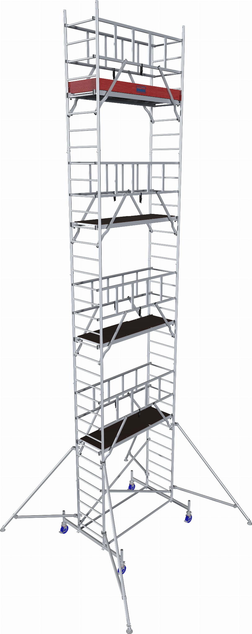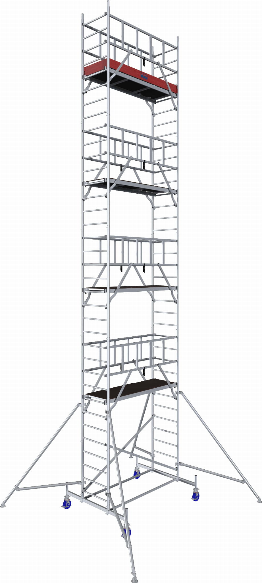 - Optymalna stabilność zapewniona przez wytrzymałe stalowe stabilizatory wymagane od 4,30 m wysokości roboczej