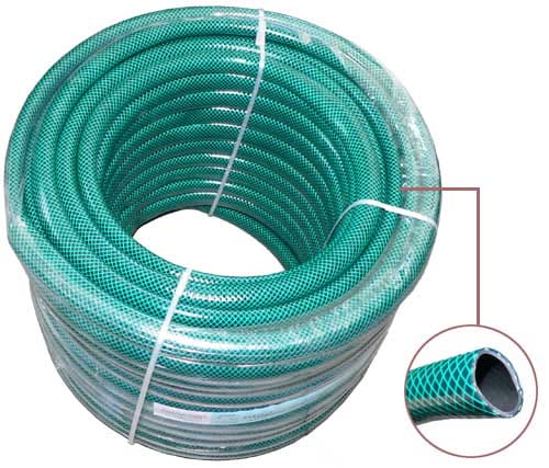 Trójwarstwowy zbrojony wąż ogrodowy z tekstylnym oplotem krzyżowym. Ogólnego zastosowania.