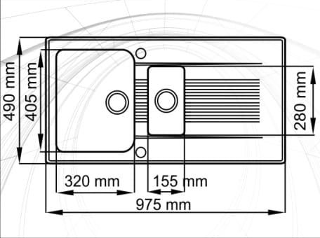 - Wymiary zlewozmywaka: 97,5 cm x 49 cm